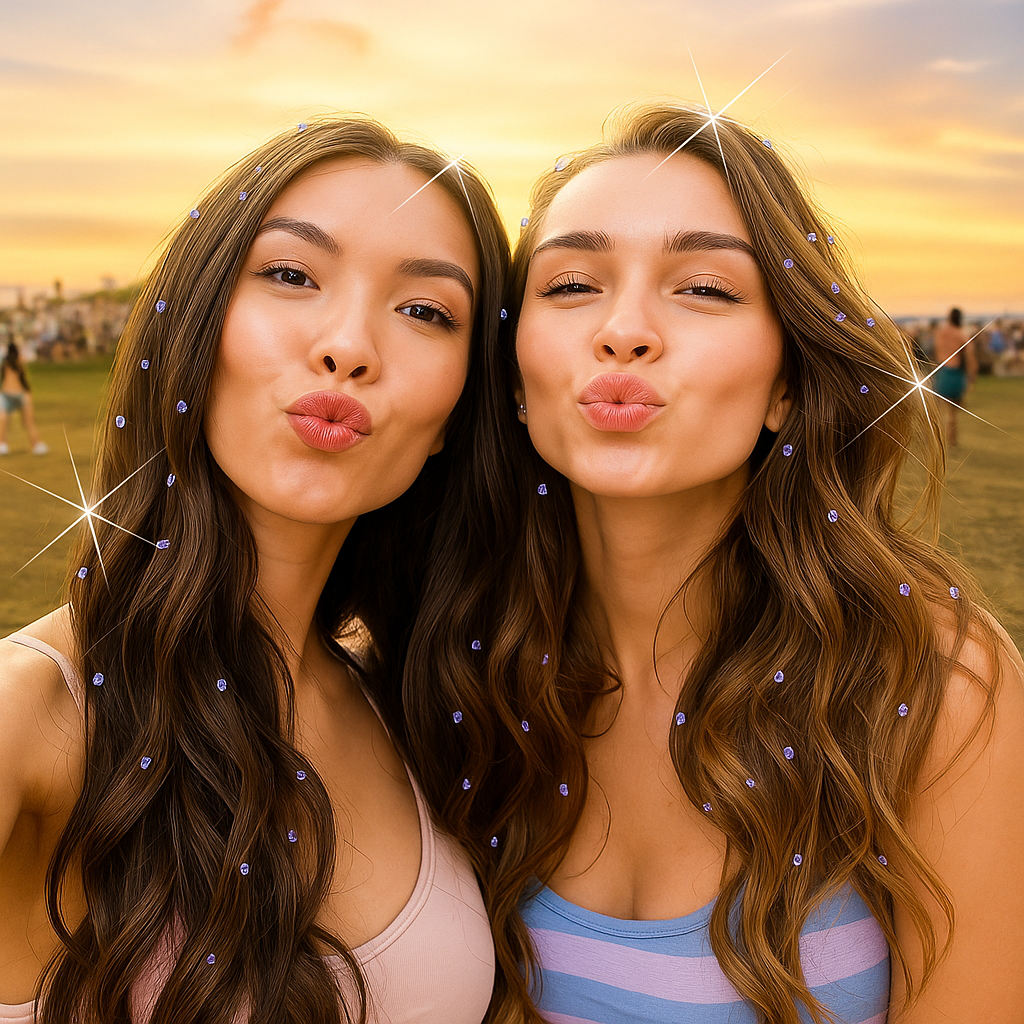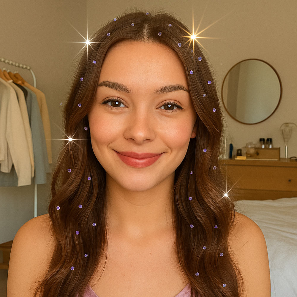 Think of this like highlighter… but for your hair. It’s the easiest way to turn a simple hairstyle into a head-turning moment. Soft, light, and reusable gems that catch the light like magic — because why blend in when you can shine?