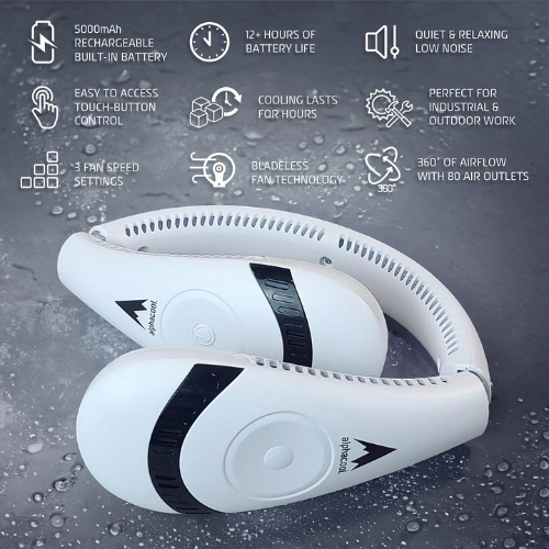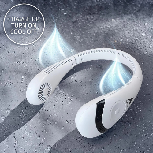 The neck fan's 5000mAh rechargeable battery provides 5 to 15 hours of cooling, depending on the speed setting you choose.